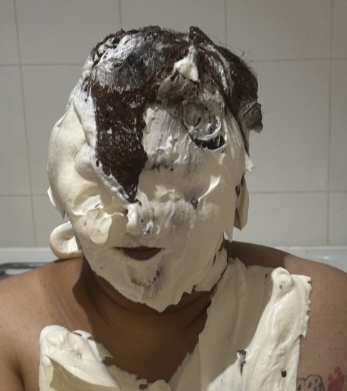 Surprised Bipieboy with a big sloppy cream pie to the face