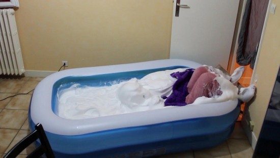 Commented on the video The Shaving Cream Pool (Reupload), "Trop bien! Je fais la me chose la maison dans une piscine de boue."