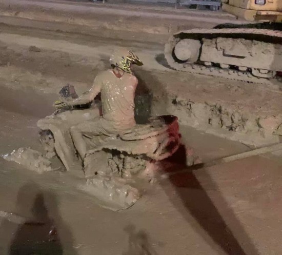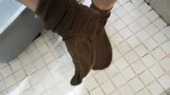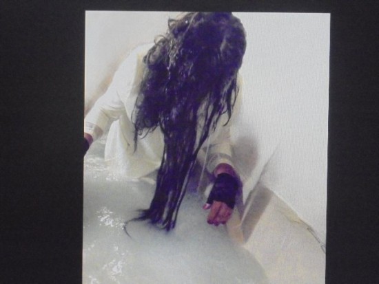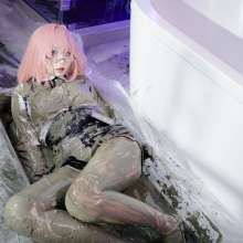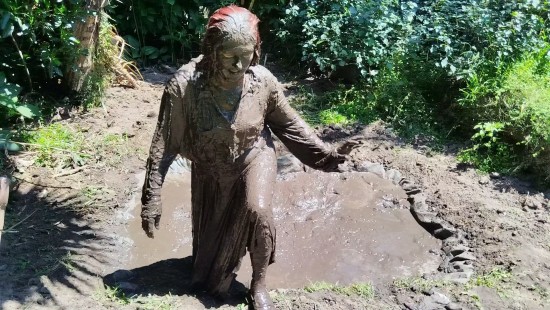Quaking Mud is the same location as Quaking Bog, but without the grass carpet. Angel, as often happens to her, falls into a peat bog. She quickly sinks deeper, though she struggles to claw her way out. The mud reaches her head and now she is desperately floundering, diving in and out of the mud. Angel surfaces several times, but each time the quicksand sucks her back in. Finally, her strength gives out, and she gives up her desperate struggle, disappearing into the depths. In the bonus video, Angel dives, emerges and escapes. Note: This is a fantasy scene intended to entertain fans of women in peril. Nobody was harmed during the filming of this scene.