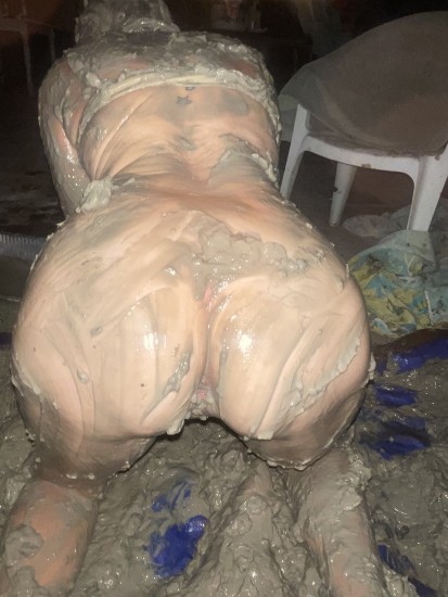 How fun it is to have to go into the pit to stir all the clay and hydrate it. I couldn't miss this opportunity to record the moment so you can join me in the fun. Wearing denim overalls, a sheer blouse, and my cowboy boots, I was ready to dive into all that mud, which over the days had become really thick and sticky. After covering myself completely in all the mud, I took off my boots to continue the fun barefoot. I also collected a huge amount of mud (a huge mountain) and dove in headfirst, literally up to my shoulders. It was so incredible! You are my special guests, so don't miss this fun and muddy adventure!