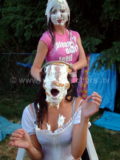 Surprised Foamyboy with a big sloppy cream pie to the face